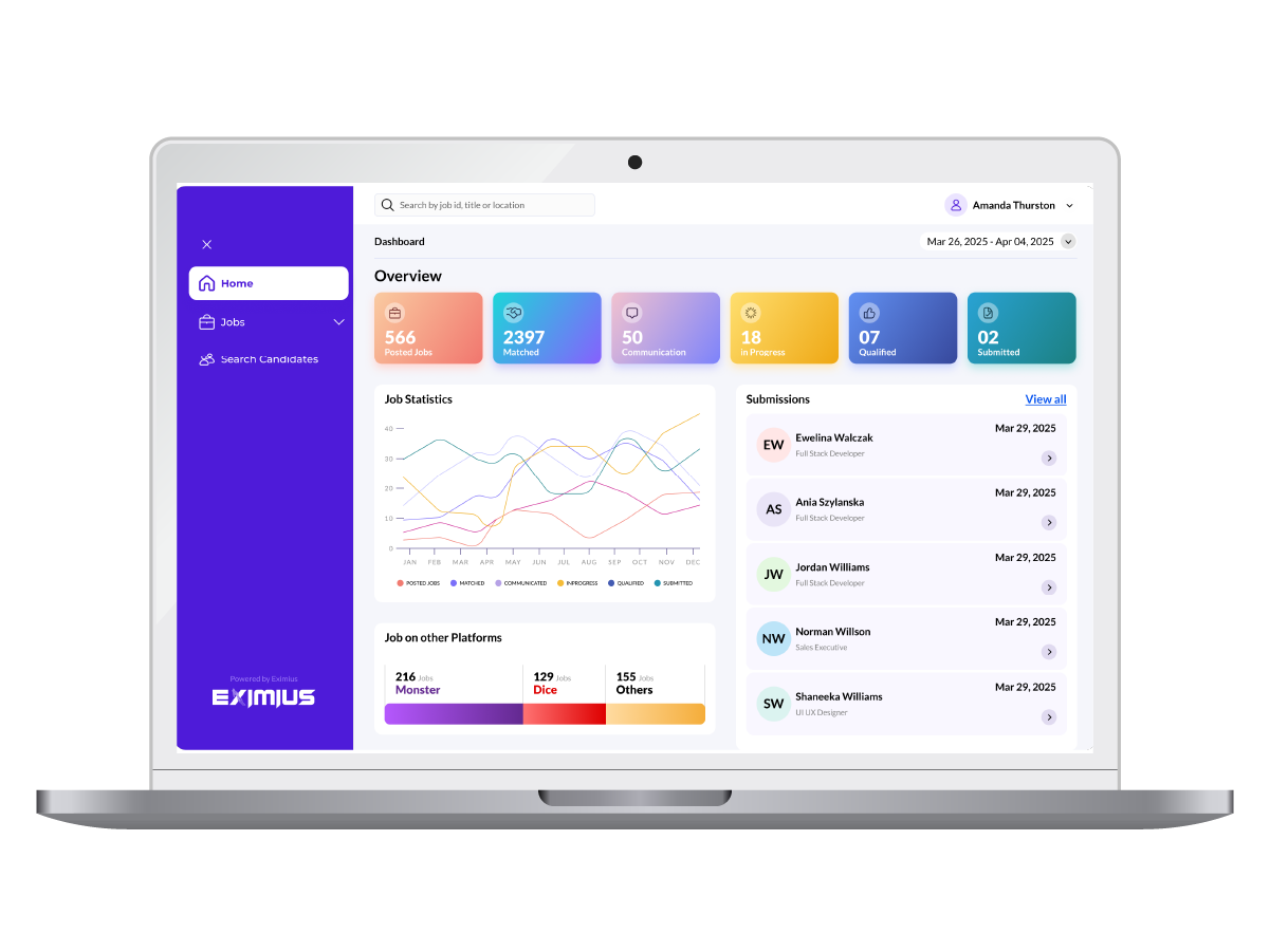 Whether your demand increases, roles multiply, or hiring peaks suddenly, Eximius keeps everything organized. The AI handles volume gracefully and lets you manage more work without compromising quality.